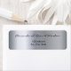 Ein Imitat silber metallisch aussehender Hintergrund. Vorlage für Namen und Adresse, schwarze Buchstaben. Die Einrichtung ist aus einem großen schneeweißen Kristall, der hinter dem Text fast unsichtbar ist. Die Namen werden mit einem modernen handgeschriebenen Stilskript geschrieben. Schwarze Buchstaben. Ideal für Weihnachtsbriefe oder Ihre alltägliche Post.