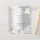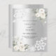 Für ein elegantes und romantisches 25-jähriges Hochzeitstag. Ein silbernes Imitat mit weißen Blumen, Rose und weißen Spitzen. Personalisieren Sie Ihre Namen und Details und fügen Sie diese hinzu. 1 Blatt = 1 Einladung mit Druckkante bis Kante.