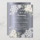 Für einen eleganten und romantischen 25. Hochzeitstag, Silverwedding. Ein dunkles Imitat silber aussehender Hintergrund mit weißen Blumen, Rose, weißer Spitze. Personalisieren Sie Ihre Namen und Details und fügen Sie diese hinzu.