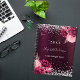 Ein tiefburgundischer Hintergrund mit Imitaten, silberfarbenem Glitzer, Glitzern und bordeauxroten und rot-rosa Blumen. Personalisieren und fügen Sie ein Jahr, einen Namen und einen Titel/Text hinzu.
