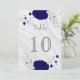 elegante, individuell anpassbare Tischnummer Karte königsblauen Blumen mit einigen silbergrauen Blätter silberne Imitate Folie geometrische Tischnummer Karte