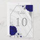 elegante, individuell anpassbare Tischnummer Karte königsblauen Blumen mit einigen silbergrauen Blätter silberne Imitate Folie geometrische Tischnummer Karte