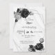 Elegante schwarz-silbergraue Blume auf einem geometrischen Rahmen auf weißem und silbergrauem Marmorhintergrund Geburtstagsfeier Einladung Die Glitzer Details werden simuliert