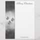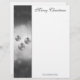 Desteis originelle Illustration silbergrauer Weihnachtsbaubles mit einem Schneeflockenmuster. Der Hintergrund ist ein schöner grauer Bukett. Neben dem Bild gibt es Platz zum Schreiben. Oben befindet sich ein personalisierbarer Textbereich, der nun lautet: "Frohe Weihnachten", während unten Platz für einen Familiennamen oder anderen benutzerdefinierten Text ist.