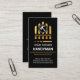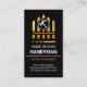 Ein ganz schwarzes Cover ist mit einem goldenen Gebäude mit einem Silberhammer inmitten der Umgestaltung ausgestattet. Darunter befinden sich 2 Bildunterschriften, z.B. "ZUHAUSE REPAIRS" und "HANDYMAN", die Sie ändern können. Danach folgen Ihr Name und Ihre Kontaktdaten. Oben auf der Rückseite befindet sich ein "Elektroräge-Zuhause"-Logo, das Sie verwenden können, gefolgt von Ihrem prestigeträchtigen Namen, den Kontaktdaten und einer Slogan-Option, um Ihre Dienstleistungen zu veröffentlichen. Eine tolle, stilvolle Karte für Handyman, Gebäude-Vertragspartner zu verwenden. #handyman #construction #homeconstruction #homerepair #building #builder #builder #remodeldeling #handymantools #interiordesign #Gebäude