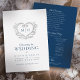 Hochzeitsprogramm für Silberschmiede in Monogramm. Personalisieren Sie Ihr eigenes Monogramm-Initialdesign. In dunkelblau, silber und knusprig weiß. Weitere Farben und passende Elemente sind verfügbar. Ideal für eine preußisch blaue oder klassische silber, weiß und blau thematische Hochzeit. © Herzkranz Kunst und Design von Sarah Trett für www.mylittleedenweddings.com auf Zazzle