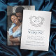 Einladungen zum Hochzeitsfeiern mit Silberschrei. Personalisieren Sie Ihr eigenes Monogramm-Initialdesign. In dunkelblau, silber und knusprig weiß. Weitere Farben und passende Elemente sind verfügbar. Ideal für eine blaue und silberne Hochzeit oder eine Winterhochzeit. © Herzkranz Kunst und Design von Sarah Trett für www.mylittleedenweddings.com auf Zazzle.