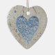 Herzförmige Weihnachtsschmuck mit einem silbernen filigranen Herz, Foto am Sandstrand. Fügen Sie einen Namen, ein Datum oder eine Nachricht hinzu, um das Design zu personalisieren.