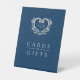 Silberherz-Monogramm blaue Hochzeitskarten und Ges Sockelschild