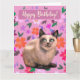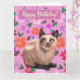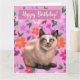 Malerei einer silbergrauen Katze, Blume im Hintergrund. Für alle Katzenliebhaber, viel Glück zum Geburtstag!