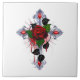 Silberkreuz mit Rote Rose Fliese