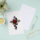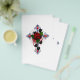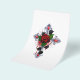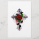 Silberkreuz mit einer rote Rose und schwarze Blätter auf weißem Hintergrund.