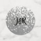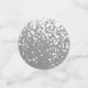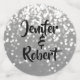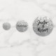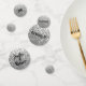 Silver Glitzer Kristalle Hochzeit personalisierte Konfetti mit Namen, Datum und anderen Text auf einem silbernen Glitzer Hintergrund