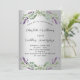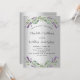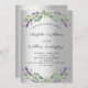 Ein Imitat silber aussehender Hintergrund. Mit Lavendel-Blume und Eukalyptusgrün dekoriert. Personalisieren und hinzufügen Sie Ihre Namen und Details