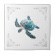 Eleganter türkisblauer 3D-Meeresschildkrötenstamm auf weißem Hintergrund. Diese Version hat einen passenden Schmuck an den Kanten.
