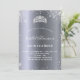 Für einen eleganten Quinceañera 15. Geburtstag. Ein Imitat silber aussehender Hintergrund. Dekoriert mit Imitat Glitzer und einem Tiara, Krone. Personalisieren und fügen Sie einen Namen und Party-Details. Der Name wird mit einem handgeschriebenen Stilskript geschrieben
