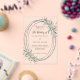Ein klarer, transparenter Hintergrund. Ein ovaler silberner Rahmen mit schlängelgrüner Vegetation. Personalisieren und fügen Sie Ihre Namen, Details. Schwarzer Text.