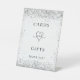 Silberne Hochzeitsgartentexte auf weißem Glitzer Sockelschild