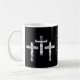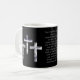 Silberne Kreuze auf schwarzem Hintergrund verzieren diese Tasse mit "mir crucified mit Christus: dennoch lebe ich; dennoch nicht ich, aber Christus liveth in mir: und das Leben, das ich jetzt im Fleisch lebe, das, ich durch den Glauben des Sohns des Gottes lebe, der mich liebte und gab sich für mich. Galatians 2:20