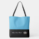 Diese niedliche stilvolle große Taschentasche wird in einer blauen und schwarzen Farbblockart mit einer Festzugkrone und einem Gewohnheitstext gezeigt.