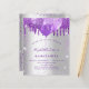Ein stilvolles Imitat mit silberfarbenem Hintergrund. Dekoriert mit lila Imitaten Glitzer und Ballons. Personalisieren und fügen Sie einen Namen und Party-Details hinzu. Der Name wird mit einem handgeschriebenen Stilskript geschrieben