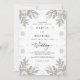 Lassen Sie sich mit diesem Design von einer ruhigen Wintereleganz verzaubern. Das zarte, frostige Blattwerk umrahmt die Szene, ergänzt durch subtile Schneeflocken-Akzente und schafft eine coole, ätherische Atmosphäre für Ihren besonderen Tag.