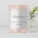 Ein modernes Brautparty Dankeschön Karte. Ein Imitat silber aussehender Hintergrund mit Rose Gold Imitate Glitzer, Glitzern. Personalisieren Sie Ihre Dankeschön Notiz auf der Rückseite.