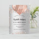 Für einen eleganten 21. Geburtstag (oder jedes Alter). Ein Imitat silber aussehender Hintergrund. Dekoriert mit Rose Gold und Imitate silberne Glitzer Tropfen, Farbe Tropfen Look und Ballons. Personalisieren und fügen Sie einen Namen, Alter 21 und Party-Details. Der Name wird mit einem handgeschriebenen Stilskript geschrieben