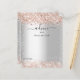 Ein Imitat silber aussehender Hintergrund. Dekoriert mit Rose Gold Konfetti. Personalisieren Sie Ihre Namen und fügen Sie sie hinzu. 1 Blatt = 1 Empfehlungskarte, die an der Kante gedruckt wird.