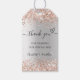 Imitate silberner Hintergrund, mit Rose goldfarben Konfetti dekoriert. Mit dem Text: Vielen Dank, dass Sie unseren besonderen Tag mit einem kleinen Herzen teilen. Personalisieren Sie Ihre Namen und fügen Sie sie hinzu. Zurück: Platz zum Schreiben von Hand.