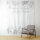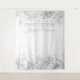 Elegante 16. (sechzehnte) Geburtstags-Party-"Foto-Stand-Hintergrund-" Silber-Winter-Schneeflocken auf Weiß.
