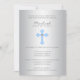 Moderne und elegante Taufe/Taufeeinladung für Baby. Blaues Kreuz mit einem kleinen Imitatdiamanten. Das helle Silber in der Mitte sieht wie das helle Glänzen auf das Kreuz und den Namen aus. Benennung kann redigiert werden. Ihre Gäste werden sehr mit diesen einlädt beeindruckt.