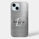 Diese elegante personalisierte Handyhülle enthält ein Monogramm und einen Vornamen in modernem Schwarz-Weiß-Schriftzug auf einem trendigen silbernen gebürsteten Metallhintergrund.