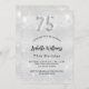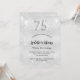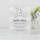 Eine moderne, stilvolle und glamouröse Einladung zu einer 75. Geburtstagsfeier. Ein Imitat silber aussehend, mit Glitzer dekoriert, Glitzern. Personalisieren Sie Ihren Namen und Ihre Party-Daten und fügen Sie diese hinzu. Nummer 75 wird mit einem Schriftart im Ballonstil geschrieben, Skript.