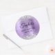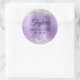 Erstellen Sie Ihre eigenen quinceanera 15. Geburtstagsparty klassische Rundaufkleber. Girly Imitate funkelnd silberner Glitzer über einem Imitat helle amethyst lila metallische Stil Ober-Folie. Passen Sie die Stile des Schriftartes an, um Ihr eigenes Design für ihre besondere Feier zu kreieren. Eine klassische, elegante Kalligraphie gepaart mit einem Schriftart aus Serifen. Die Glitzer- und Metalldesigns sind digitale Kunstwerke, die wie ein Foto gedruckt werden.