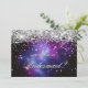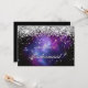 Erstellen Sie Ihre eigenen eleganten Brautparty-Angebotskarten. Imitate glänzen silberner Glitzer mit Glitzern gegen ein herrliches schwarzes, blaues und lila himmlisches Foto. Alle glänzenden silbrigen funkelnd Effekte in diesem modernen mädchenhaften Design werden mit digitaler Grafik erstellt. Ein kreatives Design für Ihre himmlische Hochzeitsfeier.