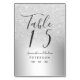 Eine schicke und luxuriöse silberne Glitzer ombre Metallic Tischnummer Hochzeit mit eleganter Kalligraphie Typografie.
