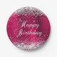 Silberner Glitzer Rosa Weinfoil Happy Geburtstag Pappteller