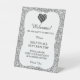 Silberner Glitzer Schwarz-Weiß-Herz Hochzeitssiche Sockelschild