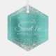 Erstellen Sie Ihre eigene süße 16 Hexagon-Ornament für Ihre Tochter. Passen Sie die Kalligraphie-Formulierung "Sweet 16" oder den Schriftart-Stil mit einem weiteren Meilenstein-Geburtstagsfest an. Im Hintergrund der Digitalfotografie befinden sich ein silbergrauer Glitzer und eine türkisfarbene, mattfarbene Omelonfolie aus Imitat. Girly 16. Geburtstagsschmuck für sie.