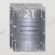 Ein modernes, stilvolles und glamouröses Party zum 21. Geburtstag. Ein silbernes Imitat mit Glitzer-Staub. Personalisieren Sie Ihren Namen und Ihre Party-Daten und fügen Sie diese hinzu. Nummer 21 wird mit einem Schriftart im Ballonstil geschrieben, Skript.