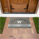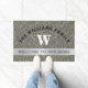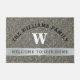 Trendy willkommene Fußmatte mit einem silbernen Glitterhintergrund. Personifizieren Sie mit Familienname- und Monogrammanfangsbuchstaben.
