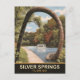 Silber Federn Postkarte. Horseshoe Park, Touristenziel, Silberquellen, Florida. Touristenboot, das auf dem See segelt. Aquarellbild, Reise-Postkarte im Vintagen Stil.