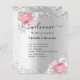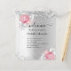 Ein Imitat silber aussehender Hintergrund. Dekoriert mit Imitaten silberne Glitzern und rosa-weiße Blume, Rose. Wenn Sie mehr Platz für Text benötigen, können Sie die Blume in der rechten Ecke entfernen.