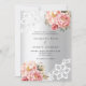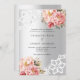 Für eine elegante und romantische Hochzeit. Ein silbernes Imitat mit rosa und Rose goldfarbenen Blumen, Rose und weißen Spitzen. Personalisieren Sie Ihre Namen und Details und fügen Sie diese hinzu.