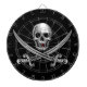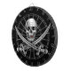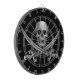 Farbfarbener Schädel und gekreuzte Schwerter. Für den diskriminierenden Piraten. Bitte beachten Sie, dass dies ein Bild ist, nicht echtes Metall.