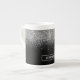 Silber und Schwarz Sparkle Glitzer gebürstete Metal Monogramm Name Espresso Kaffee oder Tee Cup oder Tasse. Das macht den perfekten 16 Geburtstag, Hochzeit, Brautparty, Jubiläum, Babydusche oder Junggeselinnen-Abschied Geschenk für jemanden, der Lieben glamourösen Luxus und schicke Stile.