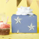 Bringen Sie eine kleine Klasse und entfesseln Sie Ihre Geschenkverpackung mit einem silbernen Sternenmuster auf pastellblauem Hintergrund. Karo in unserem Laden für mehr Verpackungspapier, geeignet für Kindergeburtstage und Babyduschen.