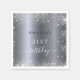 Eine Serviette für eine mädchenhafte und glamouröse 21. Geburtstagsparty (oder jedes Alter). Ein silbermetallicer Hintergrund mit eleganten Imitaten silberner Staub in Imitaten. Personalisieren und fügen Sie einen Namen und Alter 21