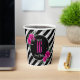 Feiern Sie stilvoll mit diesem einzigartigen 16 . Geburtstag Papier-Becher-Design mit einer großen, Imitat-Folie 'Sweet 16' in Silber und heiß rosa. Der solide schwarze Hintergrund wird mit diagonalen Streifen im gleichen Silberfolieneffekt mit üppig heißen rosa Rose um einen ovalen Rahmen gekrönt. Falls gewünscht, ist das auffällige 'Sweet 16' optional und kann gelöscht werden, um dieses Template für andere Gelegenheiten zu verwenden. Mit der bereitgestellten Vorlage können Sie Ihren Namen und Ihr Geburtsdatum anpassen. Suchen Sie ID759, um weitere Produkte und Farboptionen für dieses Design zu sehen.